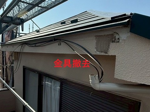 まずは古い雨樋、金具を丁寧に撤去していきます。