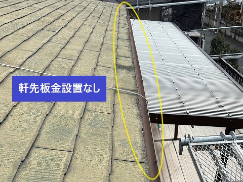 屋根の先端部分には、軒先板金を取り付けます。