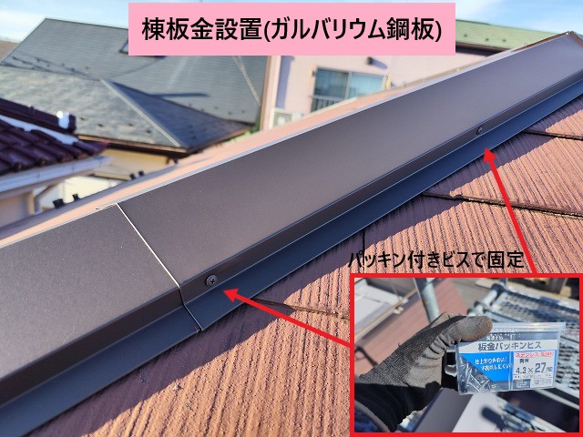お問い合わせのきっかけは、屋根の一番高い部分にある板金が浮いているように感じたことでした。